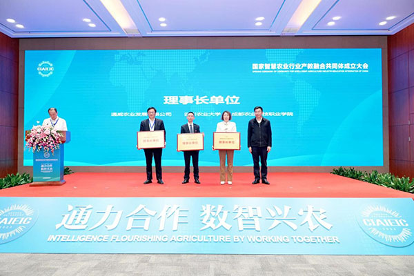 11月23日,由通威農業發展有限公司、四川農業大學、成都農業科技職業學院牽頭發起的國家智慧農業行業產教融合共同體成立大會在成都通威國際中心舉行。四川省教育廳職業教育處二級調研員蒲元、四川省經濟和信息化廳農產品加工處一級調研員徐茜、四川省水產局副局長羅本彬、成都市教育局二級巡視員何榮、都市農業農村局副局長李曉東、四川農業大學鄉村振興學院院長、成都現代農業產研院董事長周倫理、成都農業科技職業學院黨委書記張之湘出席會議,通威股份農牧總裁、通威農業發展有限公司總經理郭異忠受邀出席并致歡迎詞,與眾嘉賓及共同體副理事長以上單位代表、專家共探未來發展之路。