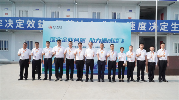 為積極響應法治企業建設,提升公司合法合規管理能力,夯實全員法治意識,10月9日-10日,通威太陽能(組件)合肥、鹽城、金堂以及南通基地先后舉行以“落實企業合規、助力通威騰飛”為主題的法務合規月啟動儀式。通威股份總裁助理、通威太陽能(合肥)有限公司總經理蕭圣義,通威太陽能(鹽城)有限公司副總經理翟緒錦及各基地管理團隊出席本次啟動儀式。啟動儀式現場,各基地中高管團隊在主題墻上簽名及合影留念,正式啟動通威太陽能(組件)法務合規月活動。
