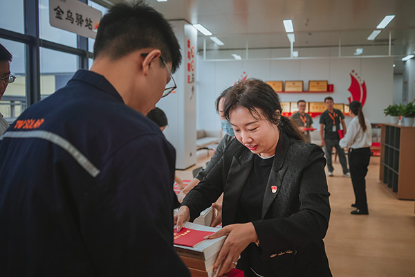 通合新能源支部書記羅曉云總為大家分發(fā)書籍