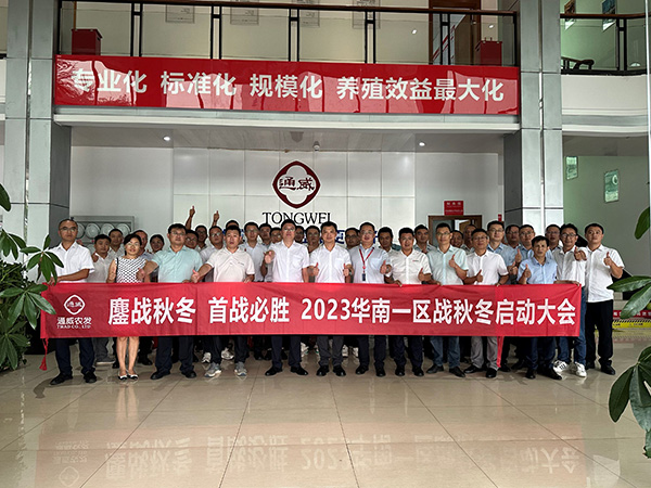 2023年9月14日,華南一區(qū)戰(zhàn)秋冬啟動大會在廣東通威順利召開,通威農(nóng)發(fā)副總經(jīng)理何東鍵、華南一區(qū)總經(jīng)理巫勝東、廣東通威總經(jīng)理趙玉東、成都生物水產(chǎn)營銷總經(jīng)理梁海及華南一區(qū)各營銷公司總經(jīng)理、市場經(jīng)理及服務(wù)經(jīng)理,共40余人出席會議。
