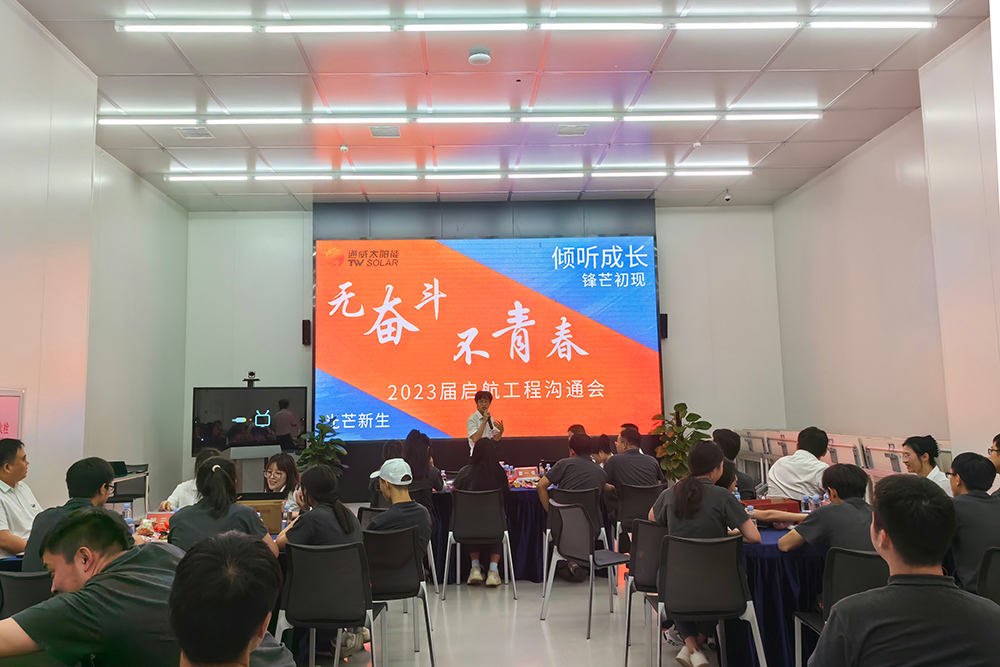 為及時(shí)了解2023屆啟航工作動(dòng)態(tài)及學(xué)習(xí)情況,助力啟航成長(zhǎng),幫助其快速實(shí)現(xiàn)轉(zhuǎn)身。近日,通威太陽(yáng)能各基地相繼開(kāi)展2023屆啟航首次座談會(huì),各基地中高管代表、人事行政部相關(guān)人員與600余名啟航面對(duì)面交流。