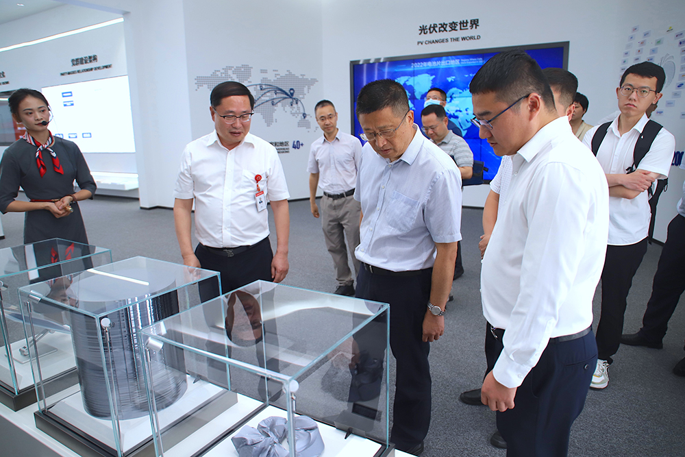 在通威太陽能智能制造展廳,調研組一行詳細聽取了通威太陽能發展歷程、公司規模、所獲榮譽、技術優勢及市場占有率,并通過深入5G智能制造、高潔凈度生產車間,近距離觀摩IGV小車、環境監控小車、機械臂等智能化設備運行情況,全面了解通威太陽能的精益管理模式和市場發展現狀。