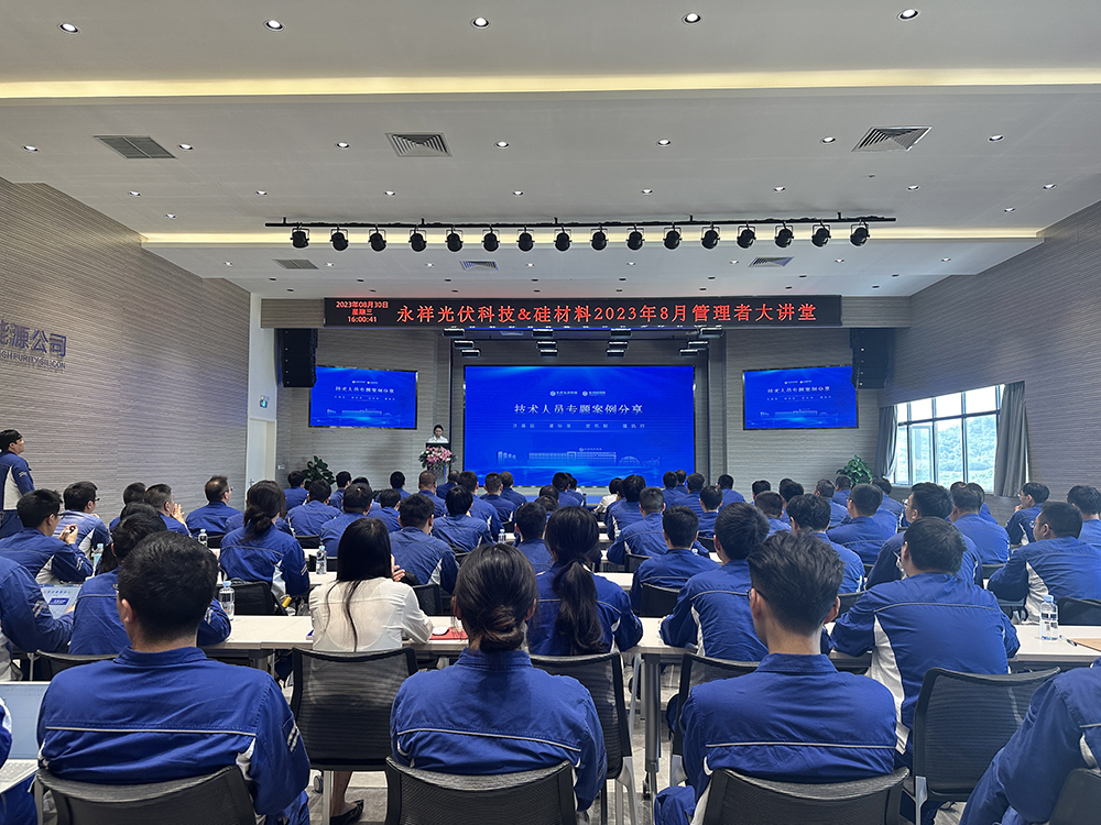 8月30日,永祥光伏科技、硅材料成功開(kāi)展8月管理者大講堂,光伏科技兼硅材料總經(jīng)理袁中華,光伏科技副總經(jīng)理張軍、副總工程師馬自成,總經(jīng)理助理趙軍、高俊偉,各部門負(fù)責(zé)人、工段長(zhǎng)及以上管理人員參加。