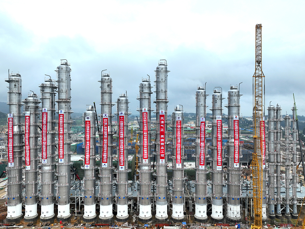 精餾塔是云南通威二期20萬噸高純晶硅綠色能源項目的核心設備,共18座塔38段。自6月15日首段精餾塔開始吊裝,在杜總的領導、相關責任部門的努力、各參建單位的全力配合下,項目部緊密安排籌劃,搶時間、重質(zhì)量、抓安全,嚴格按照清單進行逐項驗收,確保精餾塔百分百潔凈安裝,塔件焊接工作一次合格率達99.5%,吊裝工作一次就位。實際經(jīng)過66天奮力沖刺,8月21日精餾裝置最后一根主塔正式吊裝成功,按照節(jié)點提前順利完成精餾裝置吊裝任務。