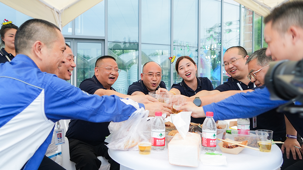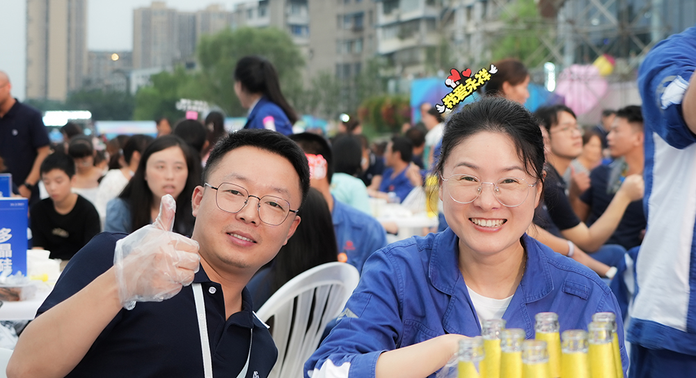 活動(dòng)現(xiàn)場(chǎng),隨處可見身著“永祥藍(lán)”的觀眾們,頭戴“我愛永祥”的發(fā)夾,手拿印有“誠(chéng)信正一”“追求卓越、奉獻(xiàn)社會(huì)”等通威文化的熒光棒,在音樂美食節(jié)中盡情參與、大快朵頤。啤酒、美食、音樂,熱烈的歡呼一陣接著一陣,熱情一浪高過一浪。來自永祥能源科技的楊連杰帶來歌曲《冰雨》,瞬間點(diǎn)燃全場(chǎng),掌聲和歡呼久久不能停歇。大家一邊欣賞精彩的節(jié)目表演,一邊享受與家人朋友共同享用美食的喜悅,音樂的韻律與美食的香氣交織在一起,熱鬧與喧囂在硅谷廣場(chǎng)盛放,絢麗的燈光和燥熱的音浪讓大家在饕餮盛宴中狂歡。