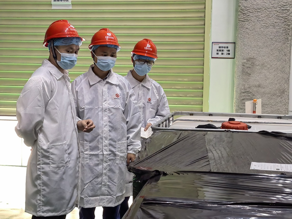 8月15日,永祥光伏科技總經理袁中華帶隊對生產現場各區域開展了現場綜合檢查,機加原料廠廠長姜波、品管部部長黃仕建、生產一廠廠長王小龍等相關人員陪同參與檢查。