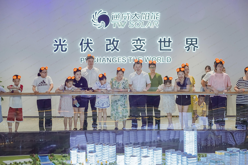 7月21日,金堂基地管理團隊攜家屬來到金堂基地智能制造體驗中心,充分感受到通威智造的科技感與未來感,共同見證公司發展成果。在隨后的手工環節,每組家庭齊心合作,以孩子的筆觸,注入光伏的元素,發揮孩子的想象力,共繪光伏世界的綠色低碳藍圖;以家庭的創造力,共同組裝太陽能發電小車。創作過程中不僅增進了家屬對光伏事業的理解,更加深了孩子們對綠色清潔能源的認識,樹立關愛家園、保護環境的理念。