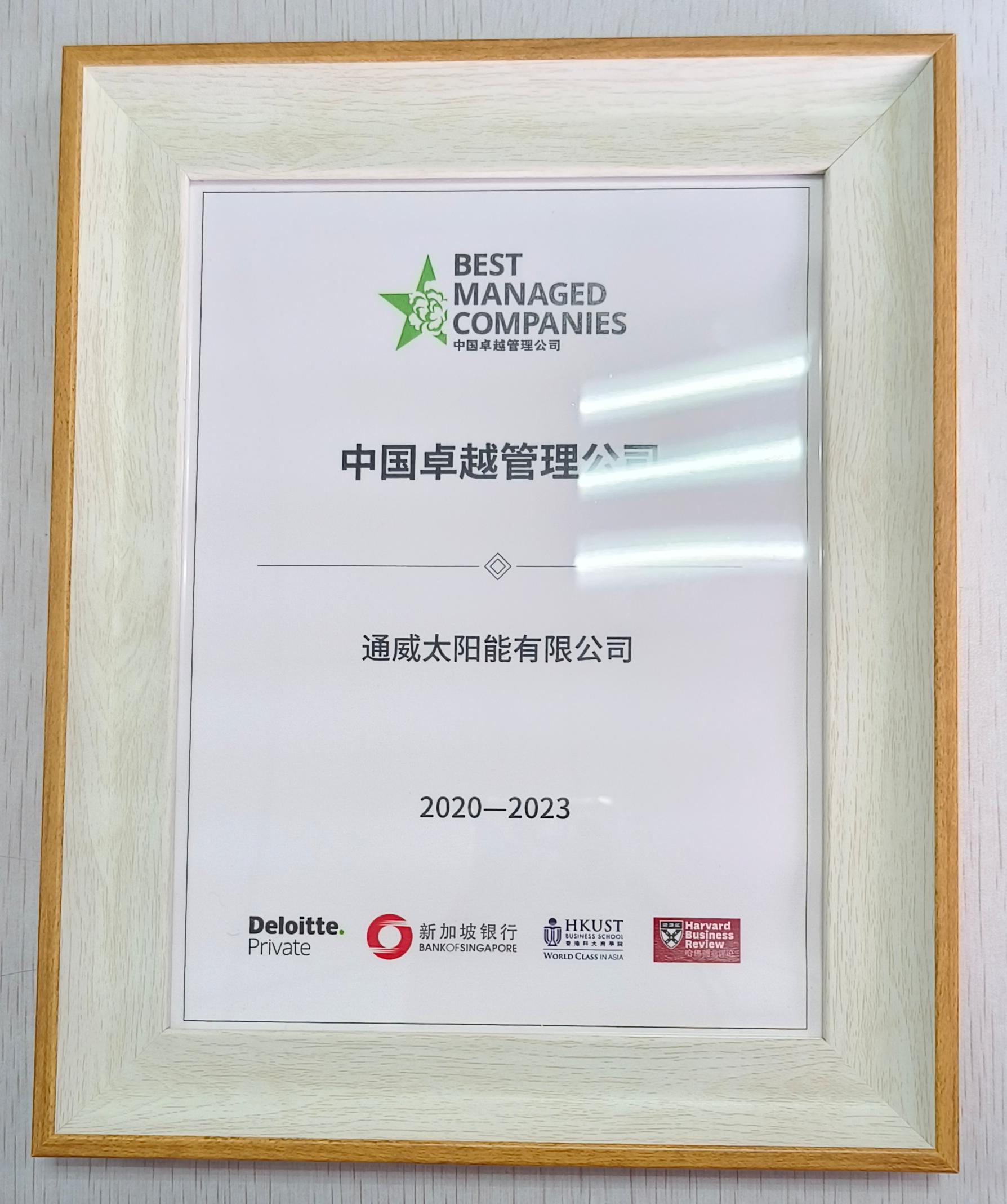 7月14日,德勤中國發布第五屆中國卓越管理公司榜單,通威太陽能憑借在科技創新、綠色低碳、可持續發展等方面的卓越表現,連續三年榮登榜單。