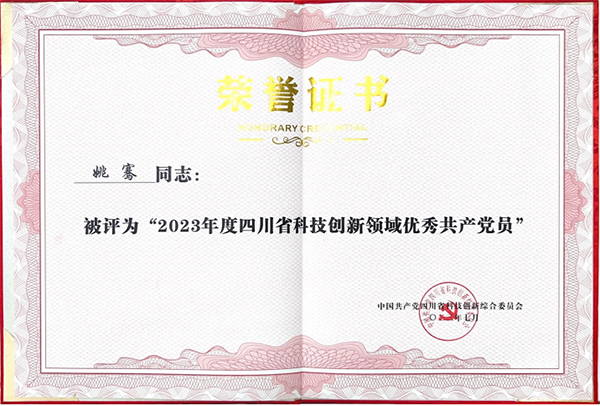 姚總榮獲“2023年度四川省科技創(chuàng)新領(lǐng)域優(yōu)秀共產(chǎn)黨員”