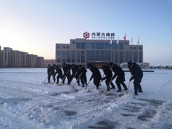 內蒙古通威一期員工嚴寒天氣為廠區除雪保障出行