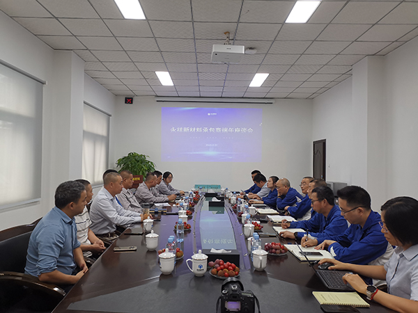 6月21日,永祥新材料組織召開承包商座談會。公司總經理廖萬能、副總工程師吳銘生、總經理助理唐祝軍及各相關部門負責人出席,物業公司、綠化單位、商砼承運單位、維修單位、裝車勞務公司等承包商責任人參加。