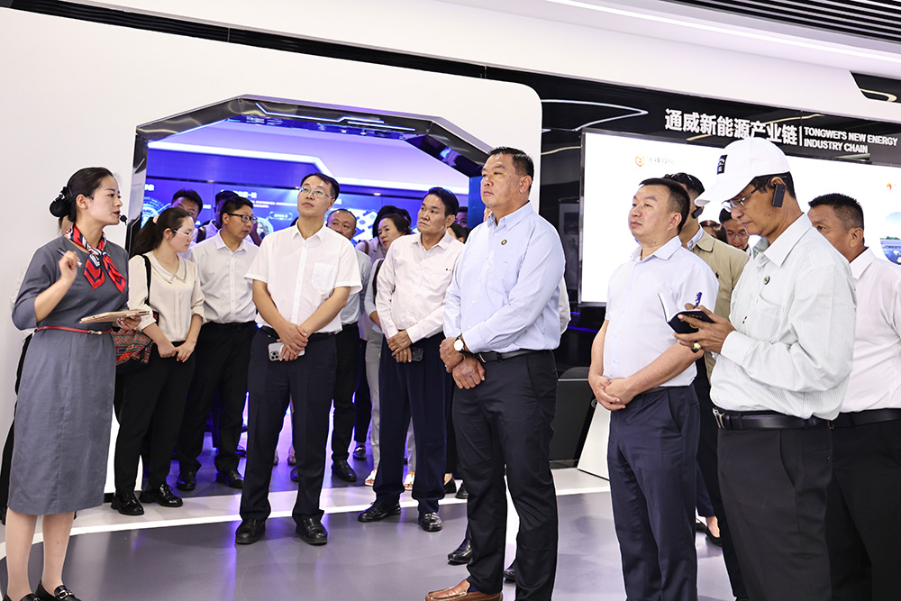 來賓一行參觀了云南通威數字展廳以及一期廠區、二期建設現場,對企業發展、經營管理、項目建設等進行全面了解,重點詢問了企業在數字化、智能化以及技術創新等方面的情況。閆總對吳覺敏凱部長一行蒞臨指導表示熱烈歡迎,并表示,通威已經形成了完整的新能源產業鏈,通過不斷創新技術,推動了行業發展,成為全球光伏新能源產業發展重要參與者和主要推動力量之一。