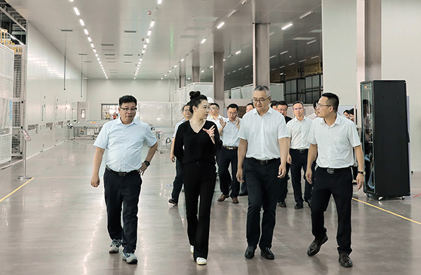 劉舒琪董事長陪同鐘靜遠書記一行參觀通威太陽能(組件)智能制造生產車間