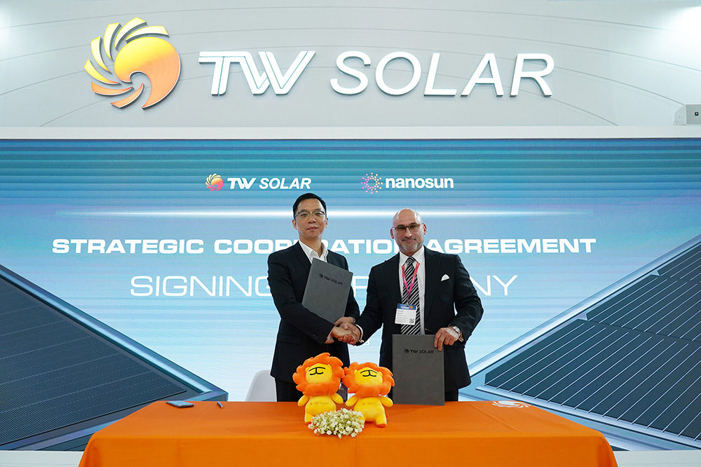 通威與捷克Nanosun公司簽署100MW分銷框架協議。通威股份光伏商務部組件全球營銷總經理邱新與Nanosun COO Mitchell Aguirre作為雙方代表簽訂協議。作為雙方代表簽訂協議。