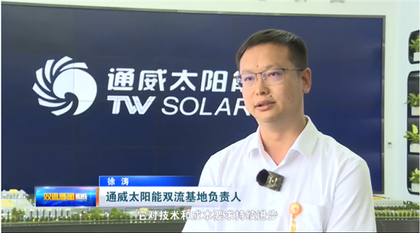 近日,雙流融媒體中心聚焦通威太陽能,以“雙流基地產值超百億,創新引領綠色能源產業發展”為題發布專題視頻,通威太陽能雙流基地負責人徐濤受訪出鏡。