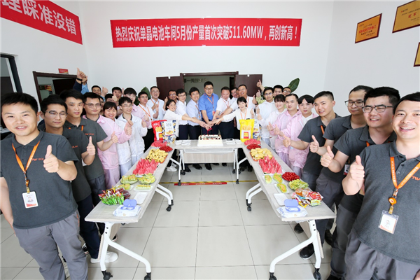 為熱烈慶祝通威太陽能安徽公司單晶電池車間5月份產量突破511.60WM,再創歷史新高。6月2日,安徽公司特組織開展“產量突破”慶功會,以激勵員工、鼓舞士氣,通威太陽能安徽公司總經理助理顧峰及各部門相關負責人、員工代表出席。