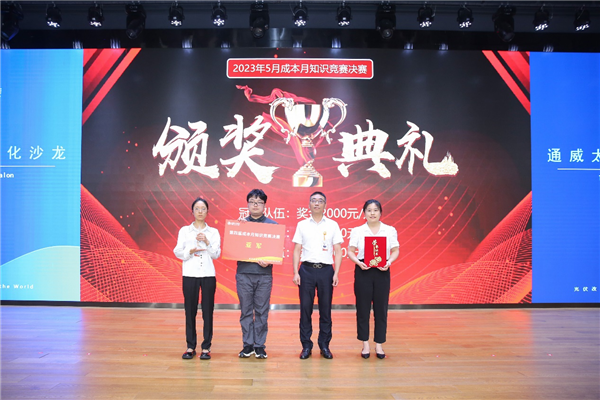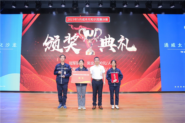 在本屆成本月競(jìng)賽中,各基地有力組織,來自廠部的選手組合成隊(duì)在基地完成激勵(lì)的初賽最終決出基地冠軍代表隊(duì)參與本次知識(shí)競(jìng)賽決賽。決賽現(xiàn)場(chǎng),各支隊(duì)伍圍繞“開源節(jié)流促發(fā)展,挖潛增效創(chuàng)輝煌”的主題,通過計(jì)時(shí)搶答展開激烈角逐。各支隊(duì)伍全神貫注投入其中,認(rèn)真聽題,踴躍作答,展現(xiàn)了積極向上的通威精神與風(fēng)采。最終,經(jīng)過三輪激烈角逐,彭山基地代表隊(duì)勇奪冠軍、眉山基地代表隊(duì)榮獲亞軍、通合項(xiàng)目代表隊(duì)獲季軍。