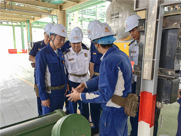 譚武忠副支隊長一行對公司發展歷程、公司規模、企業榮譽進行全面了解。李總詳細介紹公司的基本建設情況、生產工藝流程、消防安全重點部位、內外部消防設施、消防水源、重大危險源、每個裝置物料介質處置方法等,表示公司安全管理系統成立安全生產委員會,設立消防站,配備專業消防員,建立了兼職應急救援隊,能第一時間處理險情。