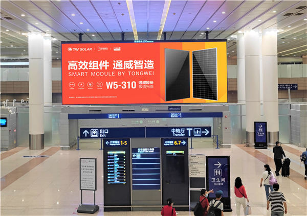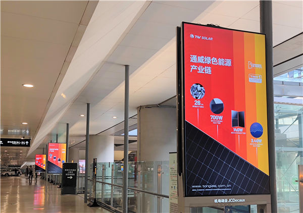 通威新能源產(chǎn)業(yè)鏈廣告“霸屏”上海浦東國(guó)際機(jī)場(chǎng)