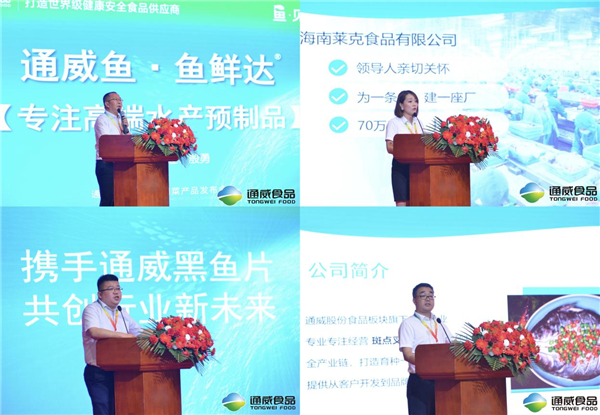 通威食品總經理陳波在致辭中表示,通威食品在劉漢元主席提出的“聚焦凡事可成,散焦一事無成”的思想指導下,高度聚焦水產品,推出三魚一蝦發展戰略。同時伴隨消費方式升級和冷鏈技術進步帶來的水產預制菜行業高速發展,通威食品順勢而為推出了多種水產預制產品,從源頭把控食品安全,創新產品研發并開展定制加工,降低了餐飲客戶對后廚的管控難度及政府對食品安全檢查的風險,通威食品愿與客戶攜手,“魚見未來”,共創美好事業和生活。