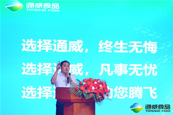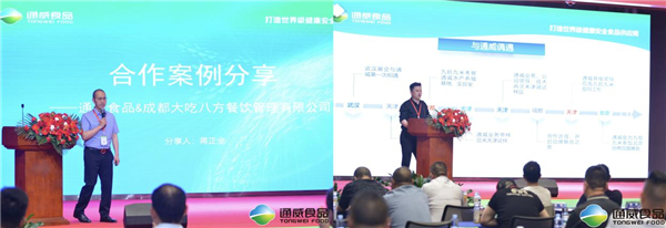 成都大吃八方餐飲管理有限公司執行總裁蔣正全、天津九拾九米董事長李自彬分享與通威合作經歷,攜手通威,財富共贏。