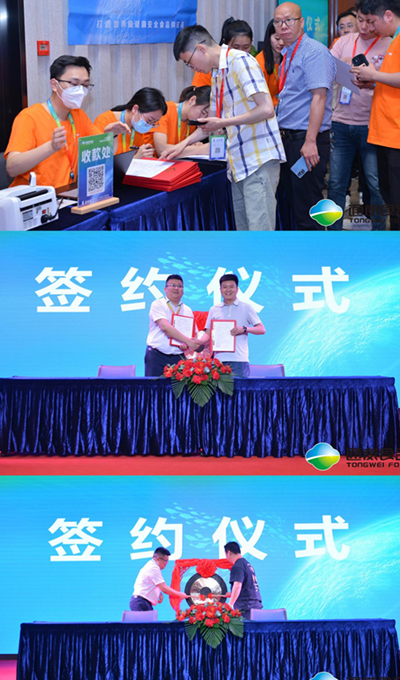 現場,通威食品副總經理薛峰闡述了通威食品水產產業鏈發展情況,并宣貫本次產品發布會重磅福利訂貨政策,將發布會現場氛圍推向高潮,訂單紛至沓來,客戶排隊繳款,現場簽約產品超過10萬件!