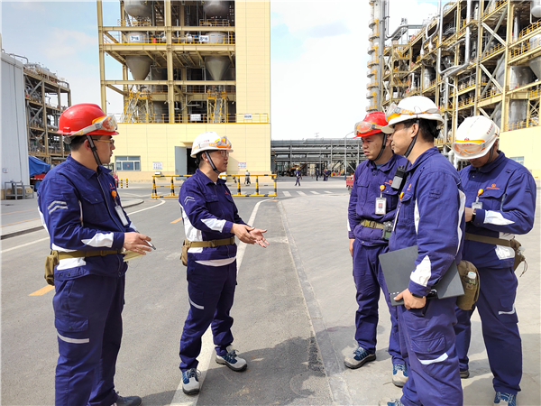 楊總在內(nèi)蒙古通威二期現(xiàn)場,了解MES系統(tǒng)中安全管理系統(tǒng)的使用情況,指導(dǎo)完善安全管理信息模塊內(nèi)容;檢查冷氫化、公輔、精餾等裝置運行情況,要求工段管理人員要熟悉工段工藝流程,各項控制指標(biāo)要了然于心,通過HAZOP分析活動,提升員工的風(fēng)險識別能力和管控能力。
