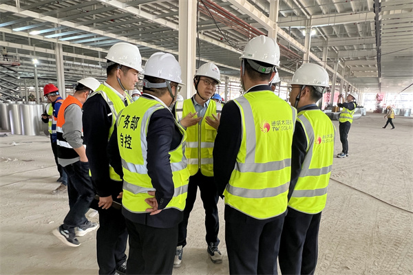 通威股份總裁助理、通威太陽能(合肥)有限公司總經(jīng)理蕭圣義帶隊檢查車間生產(chǎn)現(xiàn)場