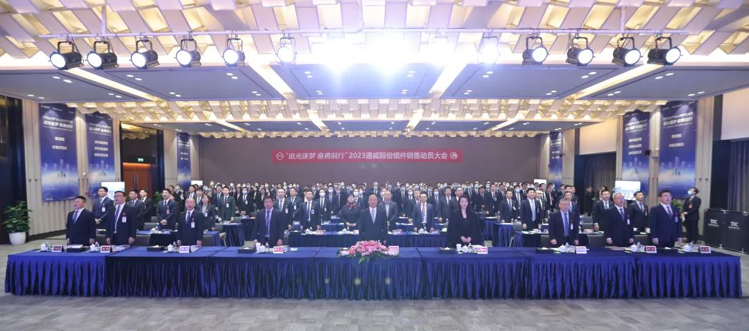 3月28日,以“追光逐夢(mèng) 奮勇前行”為主題的通威股份2023組件銷售動(dòng)員大會(huì)在通威國際中心如期舉行。全國人大代表、全國工商聯(lián)副主席、通威集團(tuán)董事局劉漢元主席,通威股份董事長、CEO劉舒琪出席并作重要指示。通威股份總部各部門主要負(fù)責(zé)人、光伏技術(shù)中心核心團(tuán)隊(duì)、組件生產(chǎn)及營銷團(tuán)隊(duì)等干部員工全程參與。
