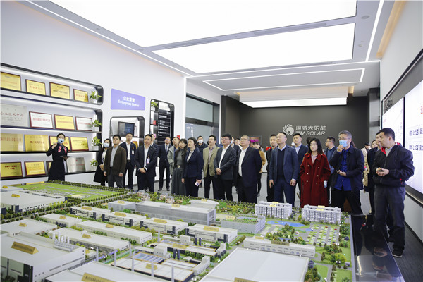 調研團一行參觀通威太陽能雙流基地智能制造展廳