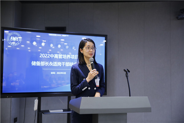 學員結業匯報環節,儲備部長班學員及適崗干部分別從崗位認知、重點工作任務剖析、培養期內收獲、后期工作重點全面回顧了培養期間的學習收獲,同時為儲備部長班學員及適崗干部頒發結業證書。