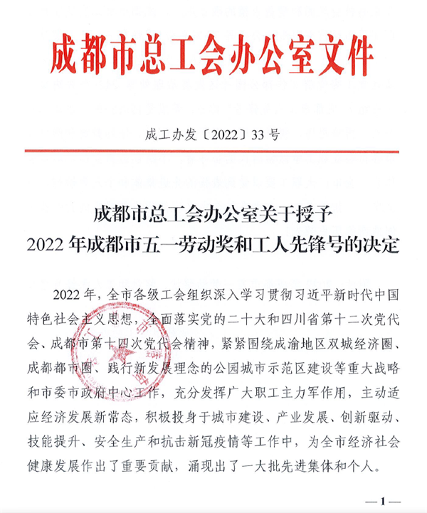 近日,成都市總工會辦公室下發(fā)了《關(guān)于授予2022年成都市五一勞動獎和工人先鋒號的決定》,通威太陽能雙流基地電池六廠生產(chǎn)部絲網(wǎng)南區(qū)A班榮獲“2022年成都市工人先鋒號”榮譽。