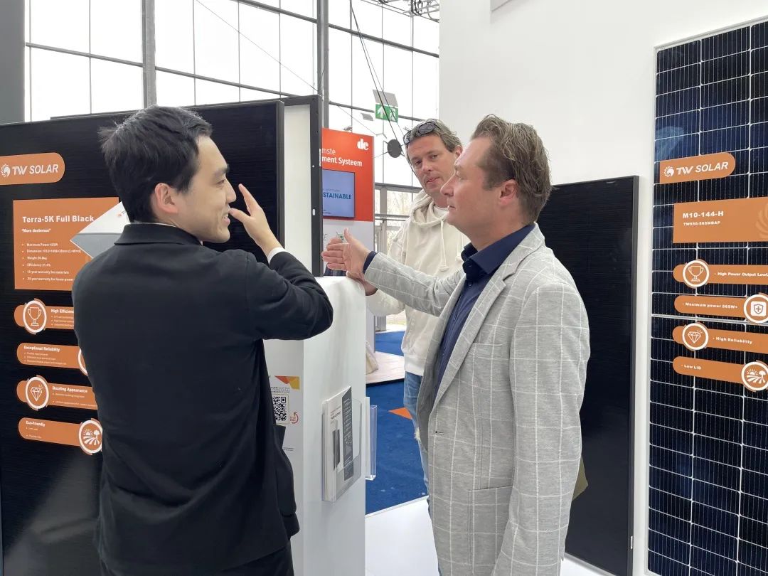 通威作為全球光伏新能源產(chǎn)業(yè)發(fā)展的重要參與者和主要推動(dòng)力量之一,多年來(lái),依托強(qiáng)勁、完善的產(chǎn)業(yè)鏈,組件產(chǎn)品遠(yuǎn)銷(xiāo)40多個(gè)國(guó)家和地區(qū),贏得了國(guó)際市場(chǎng)的高度認(rèn)可。在本次荷蘭國(guó)際太陽(yáng)能及儲(chǔ)能展會(huì)上,通威向荷蘭當(dāng)?shù)匦袠I(yè)客戶介紹了公司高效組件產(chǎn)品,共同探討全球新能源產(chǎn)業(yè)發(fā)展,為全球更多客戶提供高效優(yōu)質(zhì)的通威“智”造與通威方案。