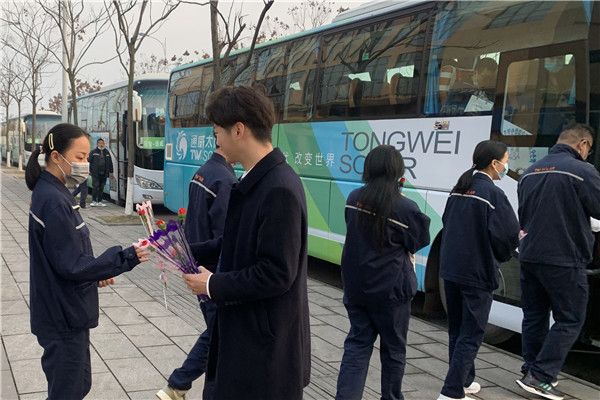 金堂基地下班時向女員工贈送鮮花