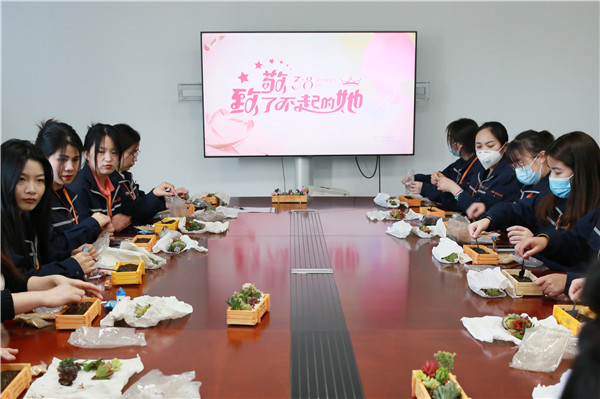 3月8日,安徽公司以“致敬了不起的‘她’”“指尖絢麗,三月女神”等為主題,開展多肉盆栽DIY、手工鑰匙扣DIY、女神專屬美甲等豐富活動,在這個特別的日子給奮斗在各崗位的女員工們帶去春日最“美”的問候。
