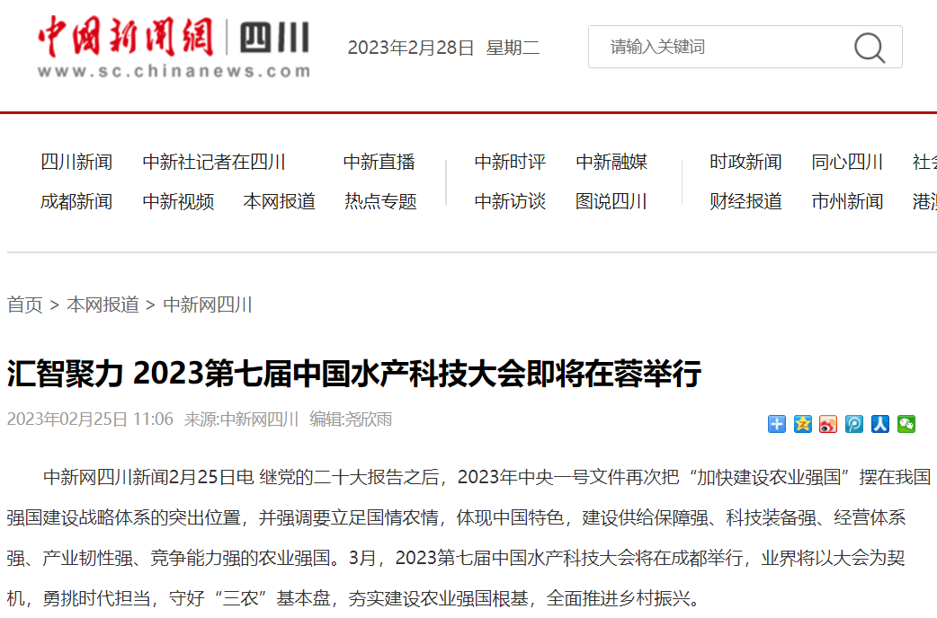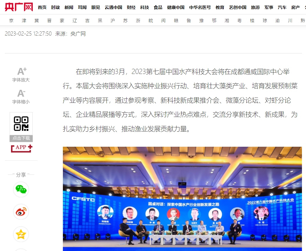 中國新聞網聚焦2023第七屆中國水產科技大會