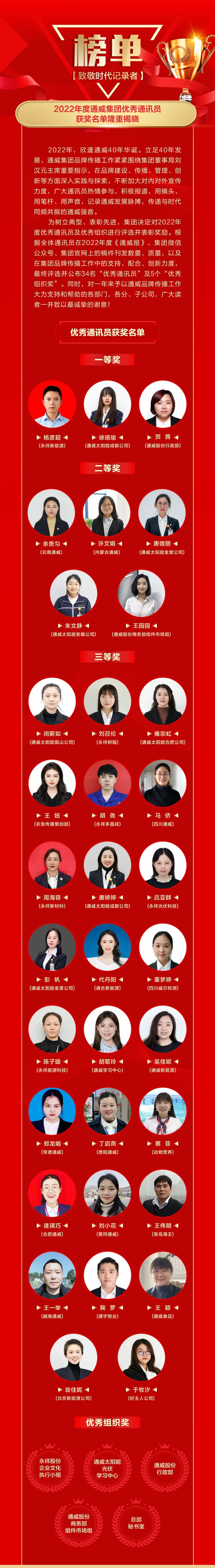 2022年度通威集團優秀通訊員榜單揭曉