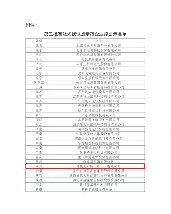 1月10日,國家工業和信息化部網站完成了對《智能光伏試點示范》企業名單(第三批)的公示,作為全球光伏行業智能制造樣板和示范企業,通威太陽能眉山基地榮列榜單。
