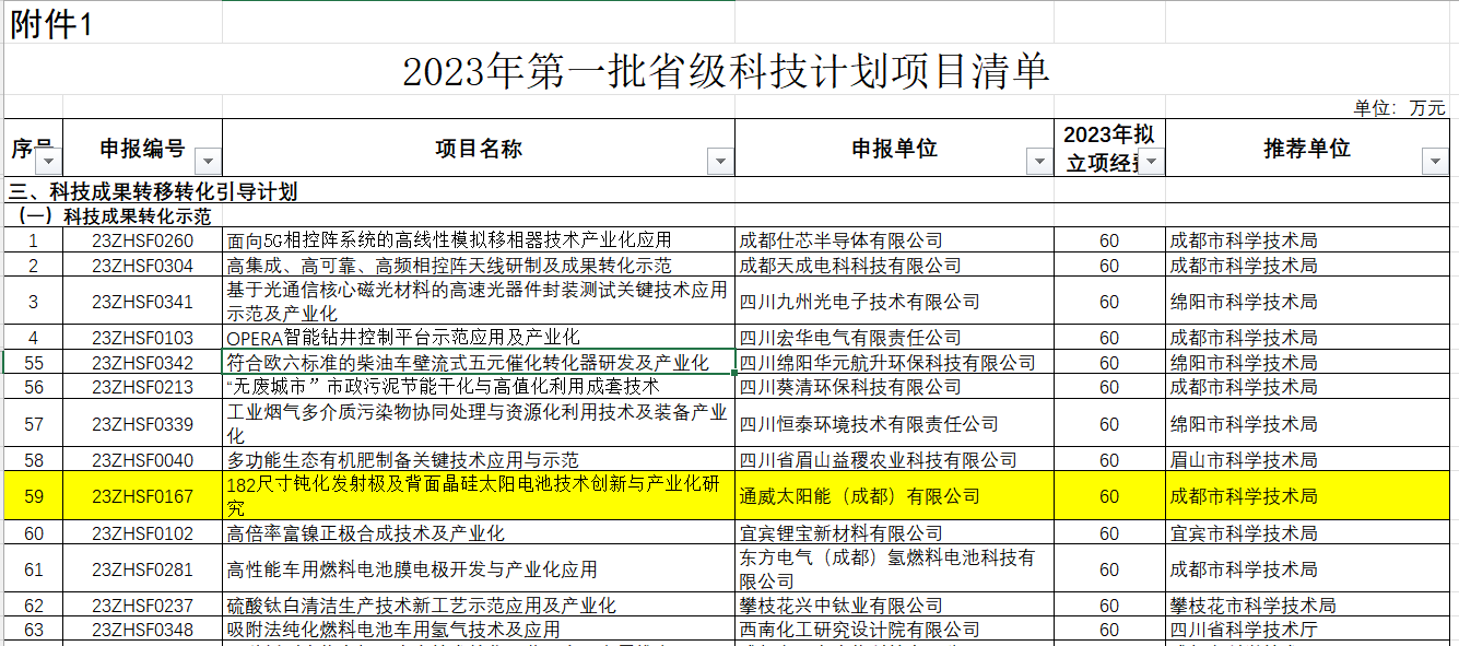 通威太陽能成功入列四川省《2023年第一批省級科技計劃項目清單》