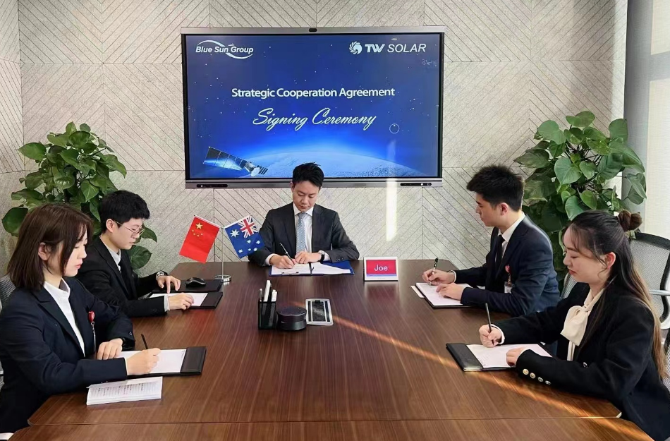 Blue Sun Group簽署現(xiàn)場(chǎng) Blue Sun Group創(chuàng)始人之一Vivian Zheng祝賀雙方順利簽署合作備忘錄,并表示,Blue Sun Group致力于成為澳大利亞光伏分銷領(lǐng)域的領(lǐng)導(dǎo)者,經(jīng)過(guò)17年的發(fā)展,已積累了豐富的經(jīng)營(yíng)實(shí)力。Blue Sun Group一直以來(lái)堅(jiān)持只選擇最好的產(chǎn)品進(jìn)行分銷,非常期待與通威的合作,希望雙方攜手為澳洲光伏市場(chǎng)發(fā)展帶來(lái)更多優(yōu)秀的解決方案。 通威組件簽署現(xiàn)場(chǎng) 通威組件亞太區(qū)商務(wù)負(fù)責(zé)人Joe Chen表示,此次和Blue Sun Group的合作讓彼此緊密連接在一起,親密的合作伙伴關(guān)系使得雙方在澳洲光伏市場(chǎng)成為命運(yùn)共同體。通威作為深耕光伏行業(yè)的龍頭企業(yè),擁有強(qiáng)大的產(chǎn)業(yè)鏈垂直一體化生產(chǎn)能力、資源實(shí)力和成熟先進(jìn)的組件前沿生產(chǎn)技術(shù)。我們將向市場(chǎng)提供最優(yōu)質(zhì)、可靠的組件產(chǎn)品,以滿足全球各地差異化的實(shí)地應(yīng)用場(chǎng)景需求。通威組件產(chǎn)品全生命周期的質(zhì)量保證和商務(wù)服務(wù)團(tuán)隊(duì)提供的專業(yè)化售前、售中、售后服務(wù),能為市場(chǎng)和客戶帶來(lái)最佳的合作體驗(yàn)。 本次與Blue Sun Group合作,通威將重點(diǎn)提供受澳洲市場(chǎng)歡迎的TW-182-54版型系列組件產(chǎn)品,該系列組件產(chǎn)品兼具外形美觀與超強(qiáng)性能優(yōu)勢(shì),產(chǎn)品整體表現(xiàn)出輕盈無(wú)暇、尊貴優(yōu)雅的特點(diǎn),深度詮釋通威高效組件產(chǎn)品的極致美學(xué);過(guò)硬的前沿組件技術(shù)加持帶來(lái)更高轉(zhuǎn)換效率、更低衰減、低度電成本和優(yōu)越的抗隱裂屬性,為客戶選擇通威組件產(chǎn)品提供全方位的多重保障。 通威發(fā)力組件環(huán)節(jié),再一次向行業(yè)展示了“通威速度”和“通威效率”。2022年,通威已有組件產(chǎn)能超14GW,目前已完成對(duì)外公告的2023年新增產(chǎn)能規(guī)劃66GW,預(yù)計(jì)2023年產(chǎn)能總計(jì)達(dá)80GW。2023年,開始量產(chǎn)的通威“TNC”高效組件將帶來(lái)產(chǎn)品換代新升級(jí),其在不同區(qū)域3%-5%的發(fā)電增益將大幅提升發(fā)電能力,降低發(fā)電成本,進(jìn)一步滿足全球客戶對(duì)清潔能源日益增長(zhǎng)的需求。