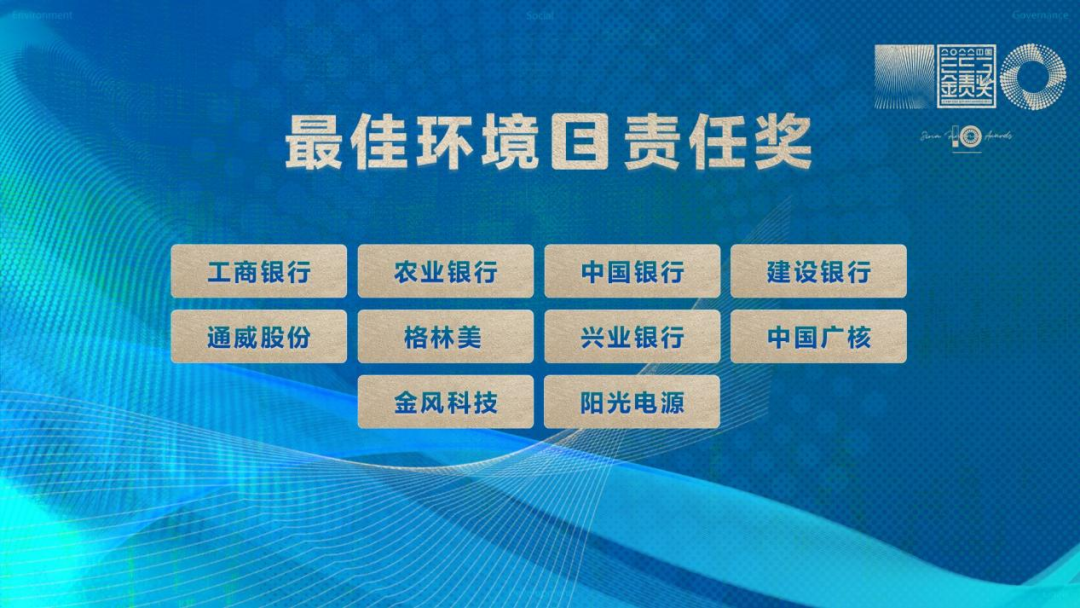 通威股份榮獲2022年度卓越董事會 據悉,本年度“資本市場‘金帆’樣本案例研究”征集類型包括中國上市公司高質量發展系列、中國金融機構卓越貢獻系列、粵港澳大灣區建設領軍系列三大類,案例共設有27個小類,眾多參選企業中,61家公司機構分獲“金帆”案例提名。 與此同時,在歷經三個多月的激烈角逐后,2022中國企業ESG“金責獎”評選獲獎名單于12月15日正式出爐。經ESG綜合績效、專業評審打分及網絡投票結果等綜合評定,通威股份榮獲2022中國企業ESG“金責獎”——最佳環境(E)責任獎。 通威股份榮獲2022中國企業ESG“金責獎”——最佳環境(E)責任獎 “金責獎”不僅意在表達業界對負責任企業的認可,更旨在為更多企業增添發展ESG的動力。2022中國企業ESG“金責獎”組委會對通威股份的獲獎表示誠摯的祝賀,對通威在ESG行動和績效方面取得的顯著成果深感欽佩。 12月16日,格隆匯·全球投資嘉年華·2023之“金格獎”——大中華區卓越上市公司榜單正式公布。通威股份榮獲年度投資價值獎,全國人大代表、全國工商聯副主席、通威集團董事局劉漢元主席榮獲“年度卓越領袖”殊榮。 通威股份榮獲“年度投資價值獎”殊榮