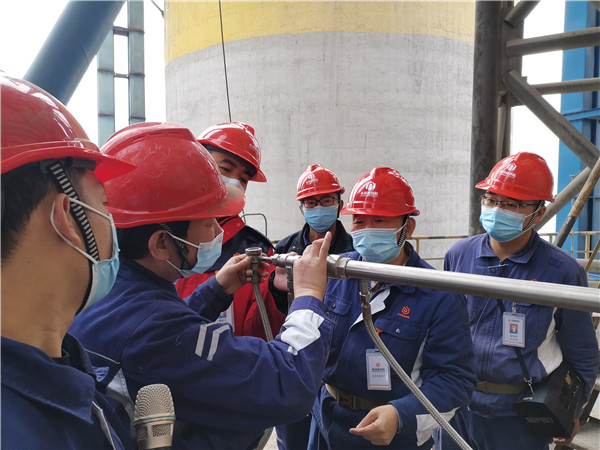 廖總一行先后來到篦冷機(jī)風(fēng)機(jī)群、大布袋收塵器、篦冷機(jī)、回轉(zhuǎn)窯、預(yù)熱器等位置。通過生產(chǎn)技術(shù)部經(jīng)理助理?xiàng)顫慕榻B,了解經(jīng)理助理在現(xiàn)場檢查中的關(guān)注點(diǎn)。隨后,參加現(xiàn)場專項(xiàng)會(huì)的部門負(fù)責(zé)人從自己的關(guān)注點(diǎn)提出改善意見。