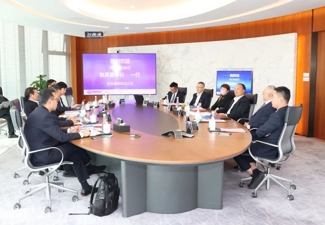11月8日,長虹控股集團黨委書記、董事長趙勇,黨委委員、副總經理胡嘉,四川長虹電源總經理何明前一行蒞臨通威考察。十一屆全國政協常委、全國人大代表、通威集團董事局劉漢元主席熱情接待并座談,通威集團禚玉嬌總裁,副總裁胡榮柱,通威股份光伏首席技術官邢國強,通威新能源總部常務副總經理吳小平陪同接待。