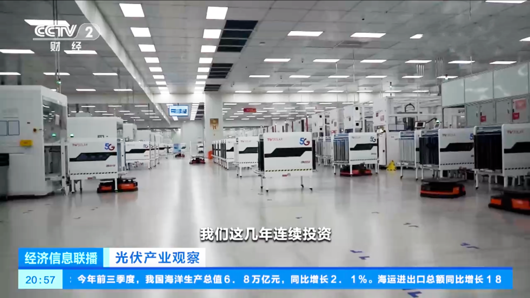 央視財經頻道《經濟信息聯播》播出通威太陽能5G智能制造生產車間畫面