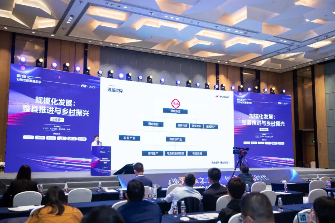 在“規(guī)模化發(fā)展:整縣推進與鄉(xiāng)村振興”分論壇環(huán)節(jié),通威相關(guān)負責(zé)人以“通威高效組件助力分布式發(fā)展”為主題,全面介紹通威企業(yè)發(fā)展歷程、企業(yè)經(jīng)營實力,并重點推介通威組件產(chǎn)品和分布式發(fā)展規(guī)劃布局,引發(fā)場內(nèi)高度關(guān)注與互動交流。通威誠摯歡迎行業(yè)同仁深入交流,共謀光伏行業(yè)高質(zhì)量發(fā)展新格局。