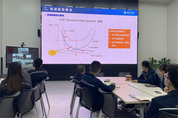 本次專題面授課程由《工作效率提升-生產換型》《八大浪費識別》2門系列課程組成。培訓現場,通威光伏學習中心內訓師們首先帶領學員分析了浪費現場面面觀,在學員們思想意識中植入一張浪費全景圖,使學員了解浪費改善方向和改善途徑。隨后,在效率提升-快速換型課程上,通過對產品切線換型流程、設備稼動率對生產產能影響等知識點的講解,讓學員對工作效率、生產效率提升有了進一步的理解和認知。通過本次專題面授學習賦能,使車間基層管理者們對生產效率提升有了抓手和改善方法,為持續推進五型班組建設奠定良好基礎。