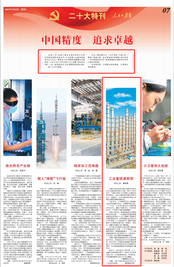 10月22日,《人民日報》(海外版)二十大特刊刊發文章《中國精度追求卓越——工業重鎮謀轉型》,報道內蒙古通威高質量發展。