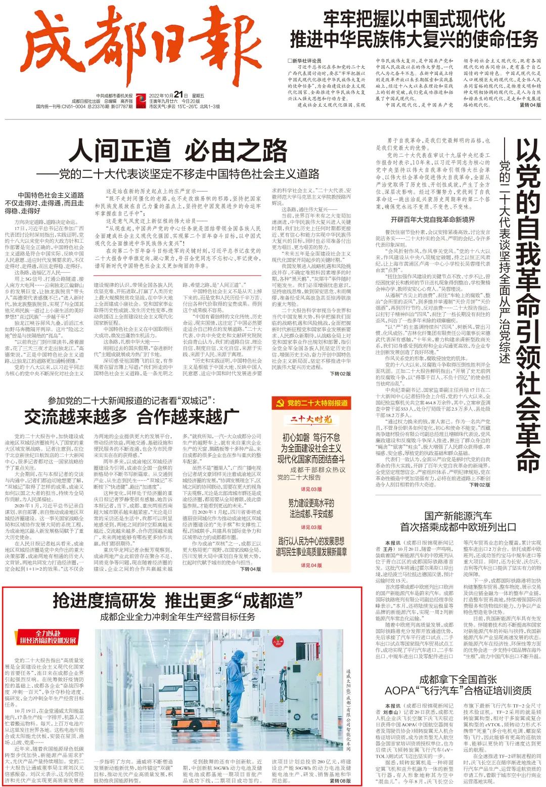 黨的二十大報告指出“高質量發(fā)展是全面建設社會主義現(xiàn)代化國家的首要任務”,連日來在成都企業(yè)界引起強烈反響。10月21日,《成都日報》以“搶進度搞研發(fā) 推出更多成都造”為題的報道,聚焦通威太陽能金堂基地高效生產情況。