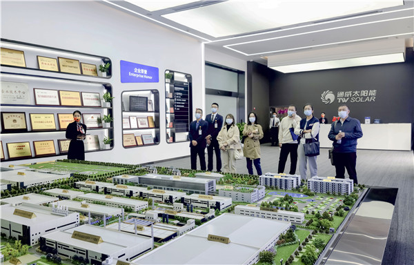此次調研旨在了解光伏產業(yè)發(fā)展現(xiàn)狀、環(huán)境以及趨勢。在公司智能制造展廳,宋總及工作人員向調研組詳細介紹了通威發(fā)展歷程、項目建設、產能規(guī)模、綠色發(fā)展、智能制造發(fā)展成果等相關情況。調研組領導一行充分肯定了通威太陽能高標準、嚴要求的現(xiàn)場管理水平,并對通威太陽能作為光伏龍頭企業(yè)對行業(yè)發(fā)展的貢獻給予高度評價。