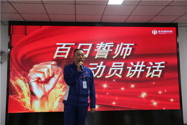 凝心聚力、使命必達(dá),為激發(fā)全體永祥新材料人的拼搏精神,增強(qiáng)沖刺年度挑戰(zhàn)目標(biāo)的決心,9月24日,永祥新材料成功召開2022年“奮戰(zhàn)100天,沖刺年度挑戰(zhàn)目標(biāo)”誓師大會,公司常務(wù)副總經(jīng)理廖萬能、副總工程師吳銘生、總經(jīng)理助理李文彬、各部門助理工程師及以上人員、后勤職能部門全員參會。會議由人事行政部副經(jīng)理先鴻敏主持。